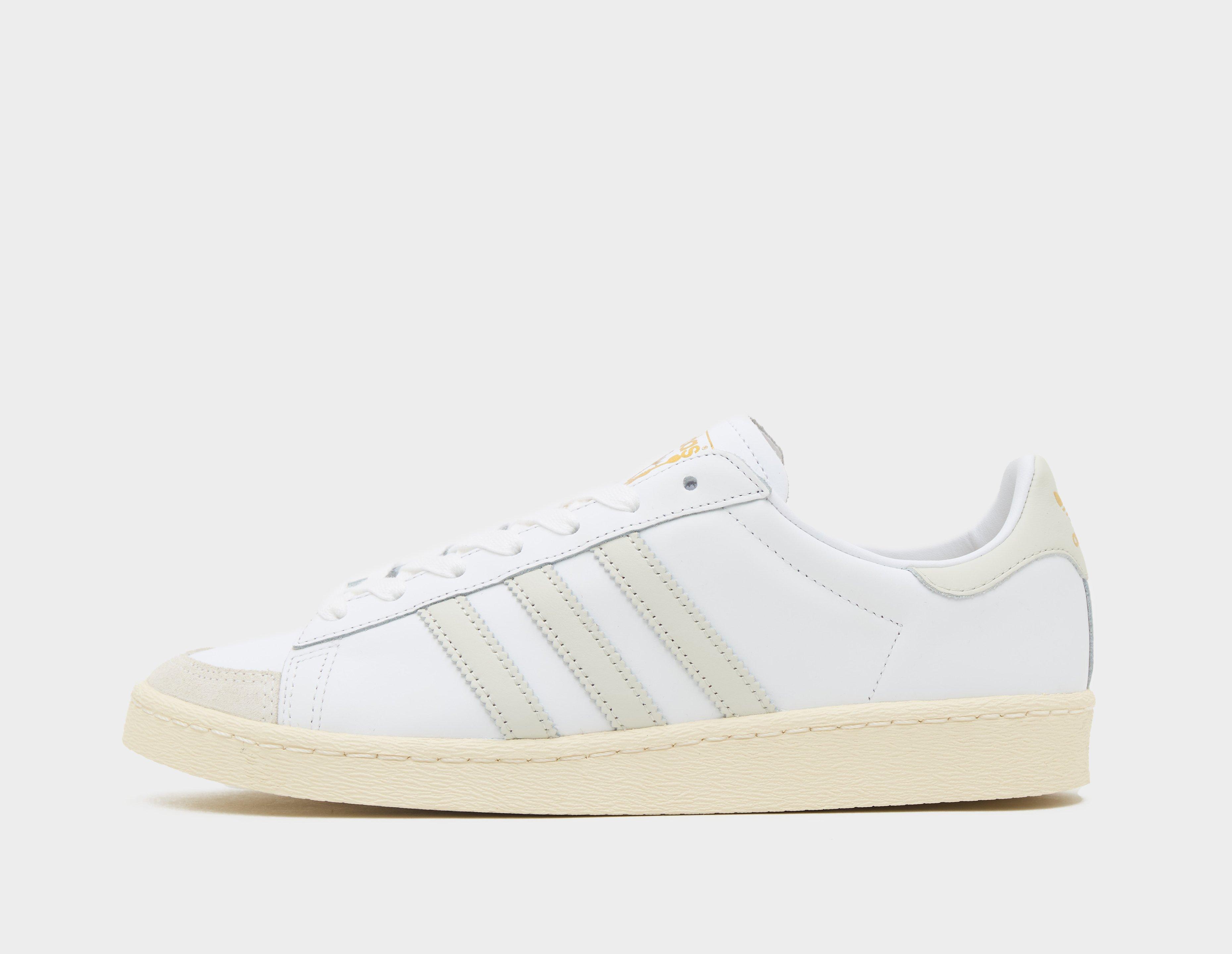 Modèle emblématique des années 70, l'adidas Originals Jabbar Lo est une chaussure à semelle cuvette à couture unique, présentée ici dans un coloris « Cloud White ». La tige en cuir arbore 3 bandes « Orbit Grey » et un bout en daim, tandis que la semelle extérieure en caoutchouc froissé à chevrons lui confère un côté rétro. | JI3425